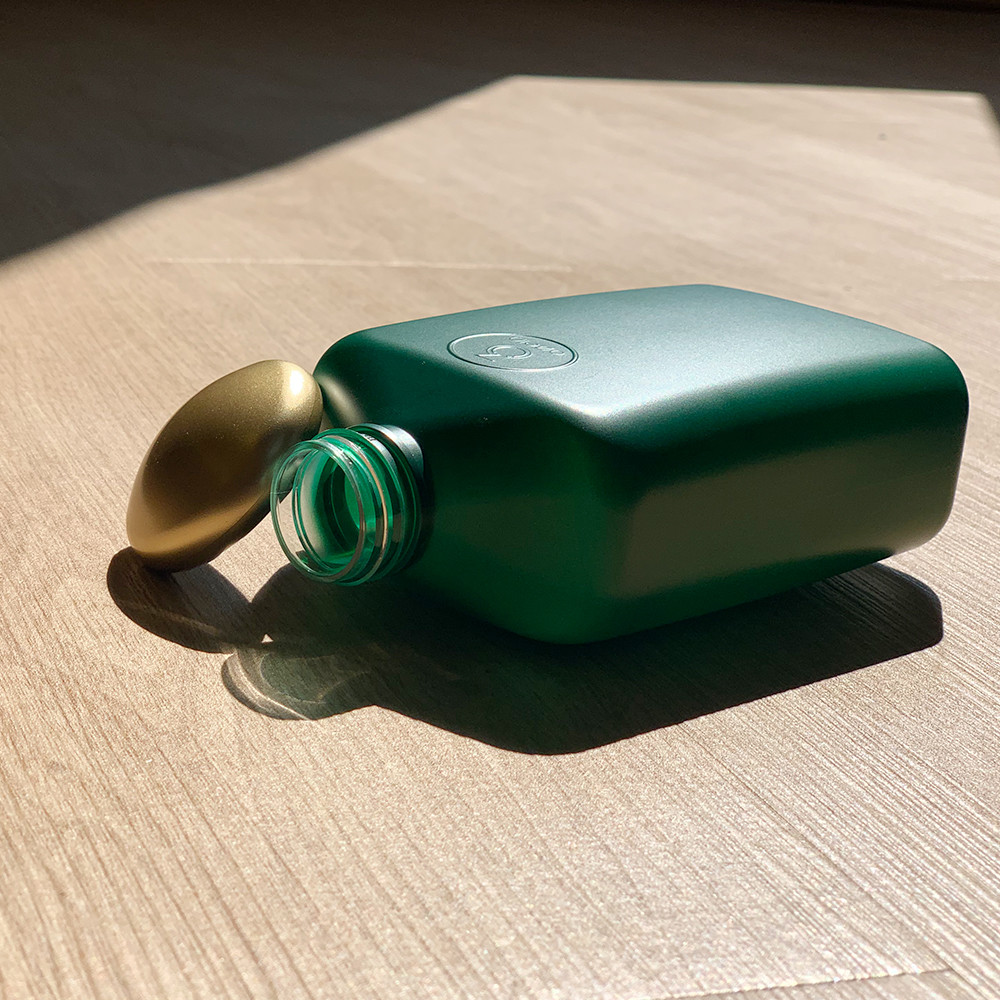 Groene vierkante het gelfles van de shampoodouche met een uniek ontworpen schroefdeksel, een goede kwaliteit, een goede strakheid en een milieubescherming.