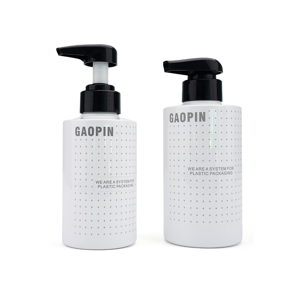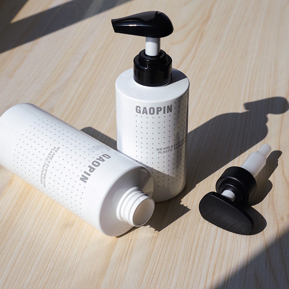 300ml/400ml/500ml/600ml capaciteits lege flessen die aan de verpakking van shampoo, douchegel, lichaamsmelk en meer kunnen worden gebruikt. Cilindrisch, zijde-gedrukt. Verleen de douanediensten. Gemakkelijk uitgerust met lotionpomp, de pomp hoofdpers, zelfs output, geen plons.